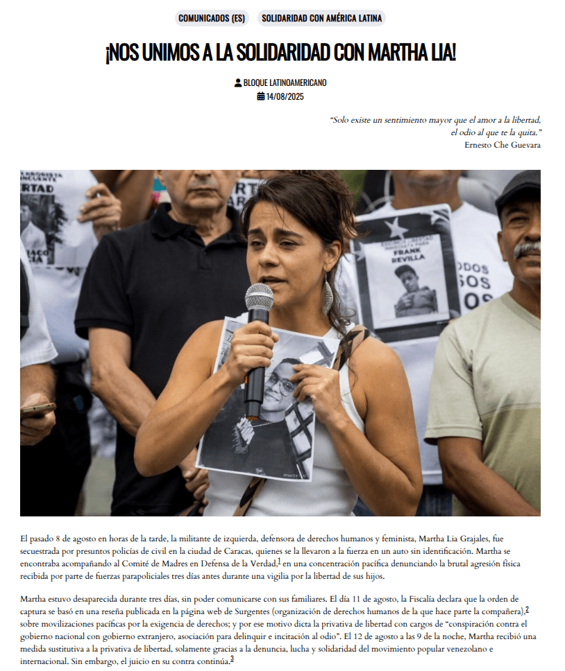 “La detención de Martha Lía Grajales y la persecución a María Alejandra Diaz se da en un contexto de escalada del madurismo contra la izquierda disidente. Esta situación generó comunicados y movilizaciones por parte de la izquierda, especialmente la latinoamericana, criticando al gobierno venezolano con el que suelen tener una posición solidaria o no suelen ser tan críticos cuando la persecución es contra opositores o figuras ligadas a María Corina Machado”, expresó el politólogo Tony Frangie Mawad.