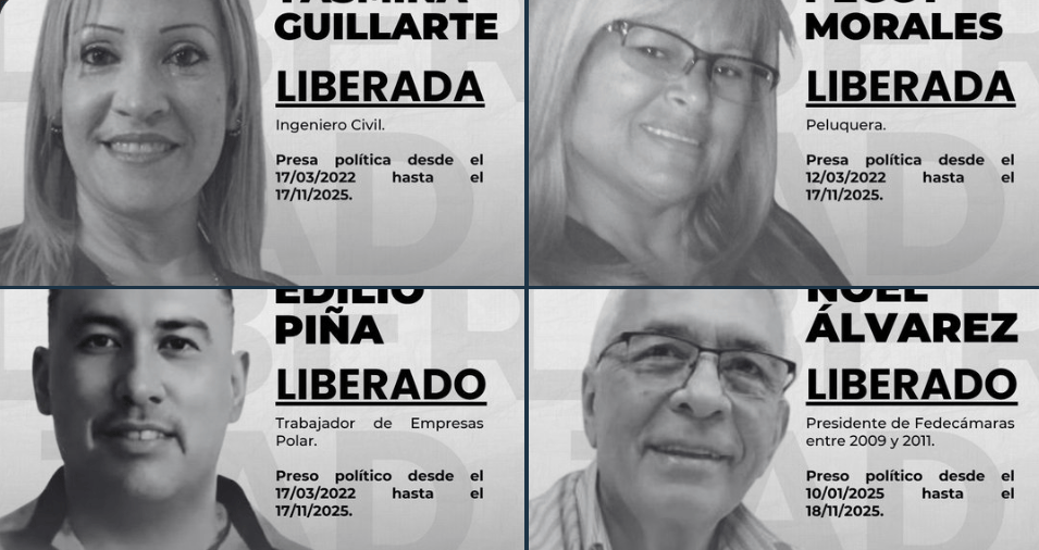 “Hoy celebramos la libertad de Yasmina, Peggy y Edilio, pero no olvidamos que aún quedan más de 1.600 presos políticos en Venezuela”, expresó la organización en redes sociales.